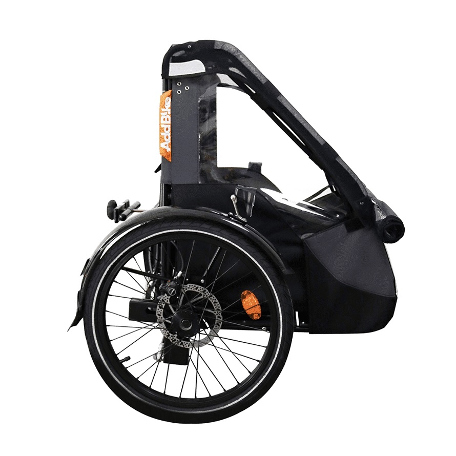 L’AddBike è una struttura a doppia ruota inclinabile che sostituisce la ruota anteriore della bicicletta convenzionale e la trasforma in una bici da carico in modo rapido e reversibile. Oltre all’AddBike, è possibile collegare contenitori specifici adatti alle diverse esigenze di trasporto. Questo ti consente di usare la bicicletta come mezzo per trasportare oggetti e altro, portando in tutta sicurezza il tuo bimbo fino a 35Kg.
